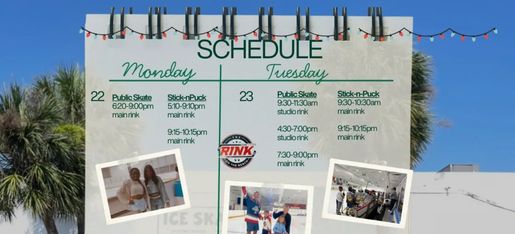 Book sessions and register to The Rink on the Beach online. View daily and weekly session schedules.